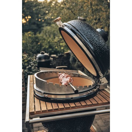 The motor that comes with the Classic and LeChef rotisserie works with batteries (batteries) inside a durable and robust metal casing that does not heat up even when close to the body of the kamado Monolith barbecue but you do have a light point and you don't want Depending on the batteries, this motor will save you from running out of batteries in the least expected moments by not depending on them.